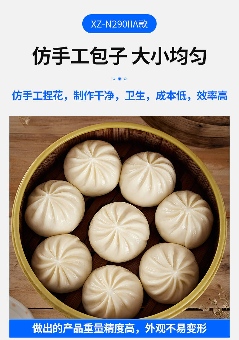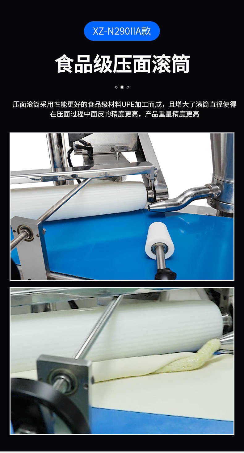 XZ-N290IIA卷麵式黄瓜视频成人在线,壓麵成型麵皮,卷麵方式包餡。仿手工捏花、一次成型、表麵光滑、口感勁道。麵餡可調、製品多樣。產品重量精度高,規格,大小,麵皮的厚度皆可調控。