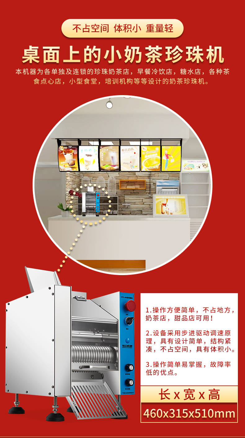 VFD-900珍珠奶茶機,奶茶店、甜品店可用。可生產奶茶珍珠,果蔬圓子,無餡湯圓,水晶湯圓,各種芋圓。不占空間、體積小、重量輕,桌麵上的小奶茶珍珠機。告別手工繁瑣的工序,省時省力,輕鬆解決手工麻煩,成本高等一黄瓜APP视频下载問題