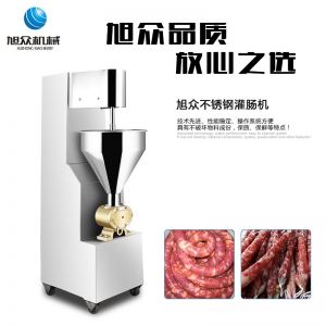 SZ-200灌腸機,適合灌製各種香腸、紅腸、臘腸及糊狀製品。本機使用敞開式不鏽鋼料鬥,適用於連續添加物料;與灌裝手接觸部件全部采用優質不鏽鋼製作以防生鏽;該機自動貨程度高,技術先進、性能穩定、操作簡便、工作效率高,具有不破壞物料成份,保質、保鮮等特點。