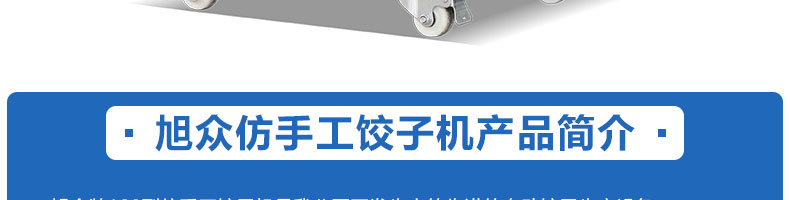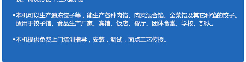 JGB-180餃子機,先進的自動餃子生產設備,包括主動壓皮部分、自動供餡部分、自動包合部分、自動成品輸送部分,並且隻要更換模具,就可製鍋貼等食品。適合食品速凍廠、飯店、廠礦學校食堂等製作包餡麵製品單位使用。