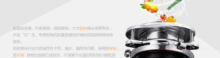 DCLQ56-廚房垃圾處理器,垃圾處理器能夠有效地將食物垃圾研磨成細小顆粒,直接從下水管道排出,從而輕鬆實現及時方便快捷的廚房清潔,避免食物囤積滋生病菌,蚊蟲和異味,有效優化家居環境。