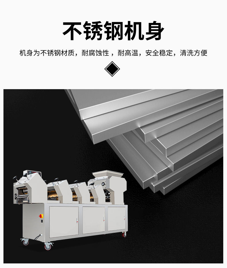 JG-7MT300麵條機,多種功能一機搞定比傳統手工做麵條,省時省力。可以做什麽鮮麵、蔬菜麵、掛麵、圓麵、寬麵、刀削麵、波浪麵等。不同的麵刀可以做出不同形狀的麵食做工細,實用又方便,出麵均勻,成型漂亮。