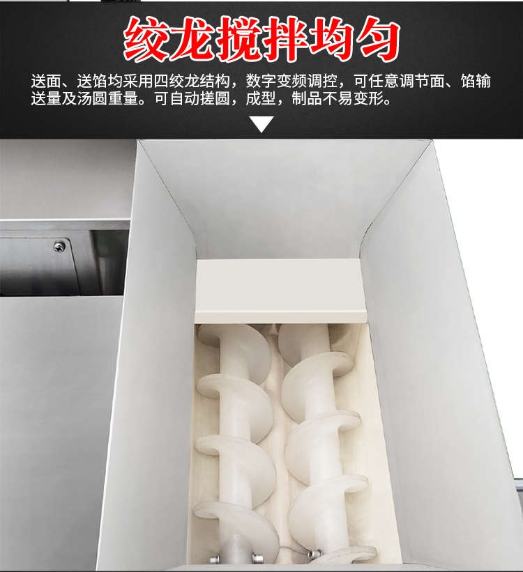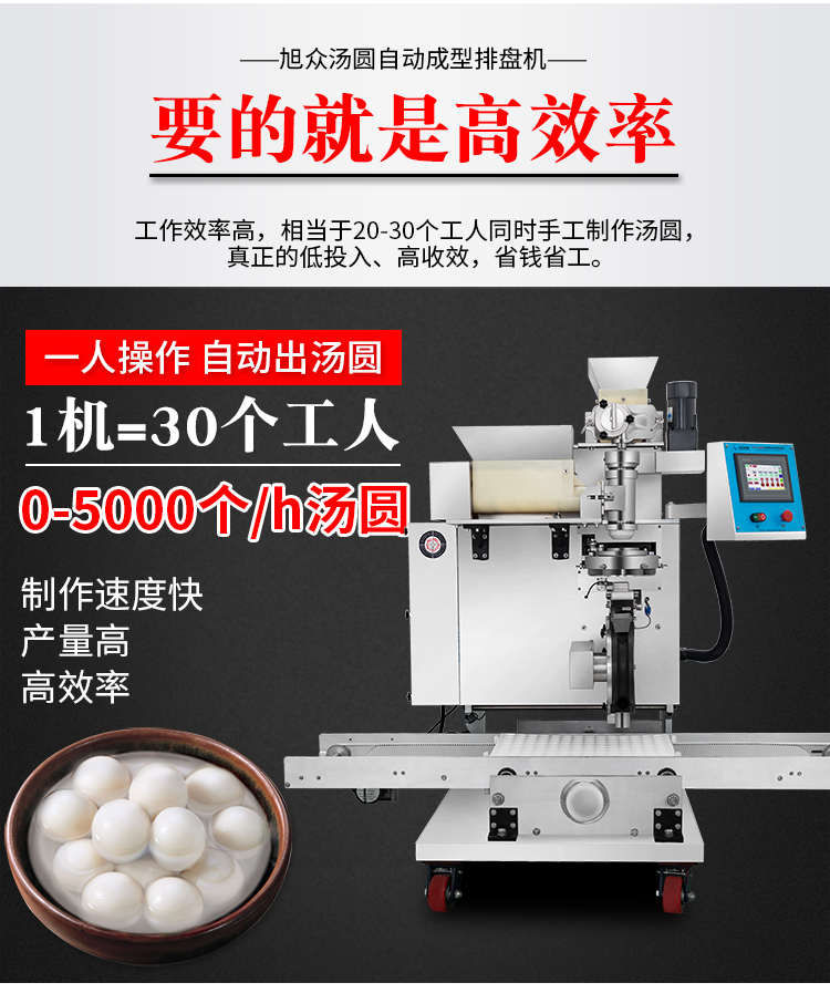 VFD-4000B湯圓機,定量準確自動搓圓排盤成型大小均勻口感柔滑。可製作各式包餡食品,如湯圓、芝麻球、豆沙包、南瓜餅、奶黃包等